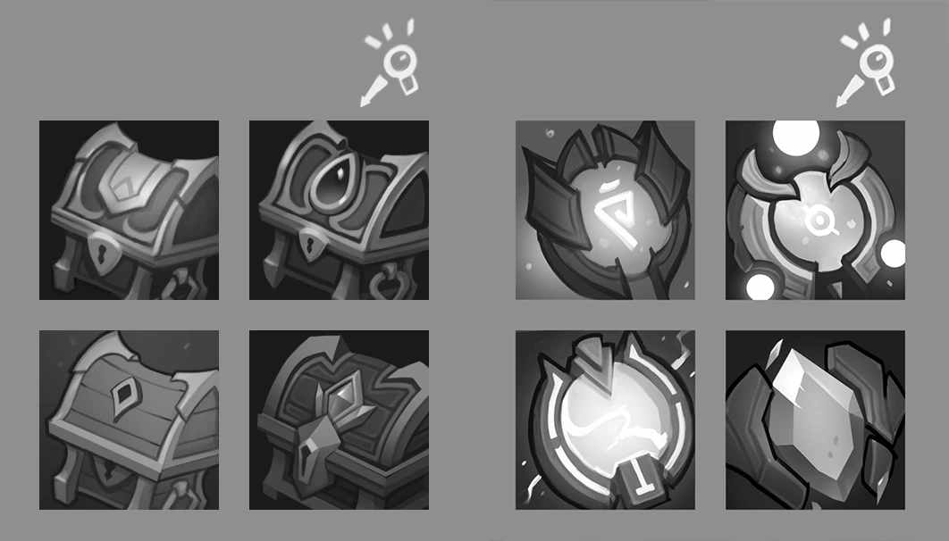 Доработка до финального рендера 10 иконкок игрового инвентаря по фидбеку