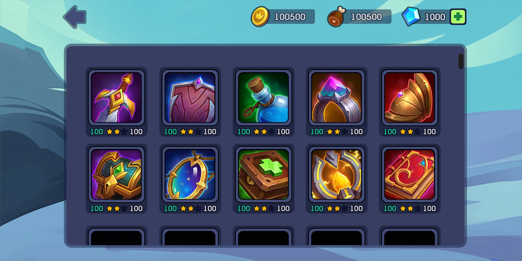 Скетчинг 10 иконок игрового инвентаря персонажа